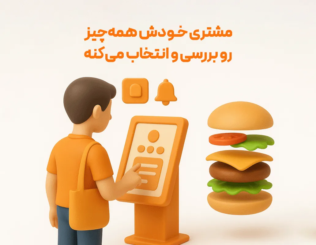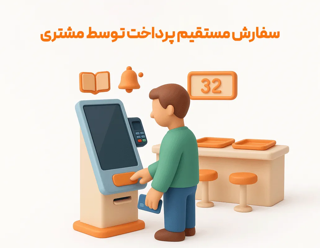 با این امکان و با در اختیار قرار دادن یک سیستم لمسی در مجموعه خودتان، امکان ثبت سفارش توسط خود مشتریان برای ایشان فراهم می شود. کیوسک سفارش گیر یکی از مهمترین دستگاههای موجود در رستوران، کافه و برخی فروشگاههای بزرگ است. مشتری با ورود به این محیط می تواند سفارش دلخواه خود را با بررسی تمام جزئیات ثبت و پرداخت نماید و فاکتور سفارش ثبت شده را دریافت کند و منتظر آماده سازی و دریافت سفارش خود بماند.