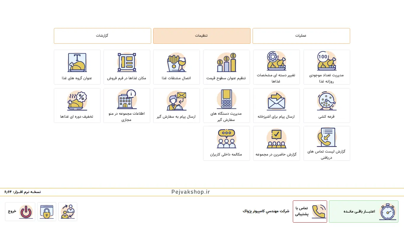 - امکان مدیریت انبار و موجودی غذا داشته باشد.