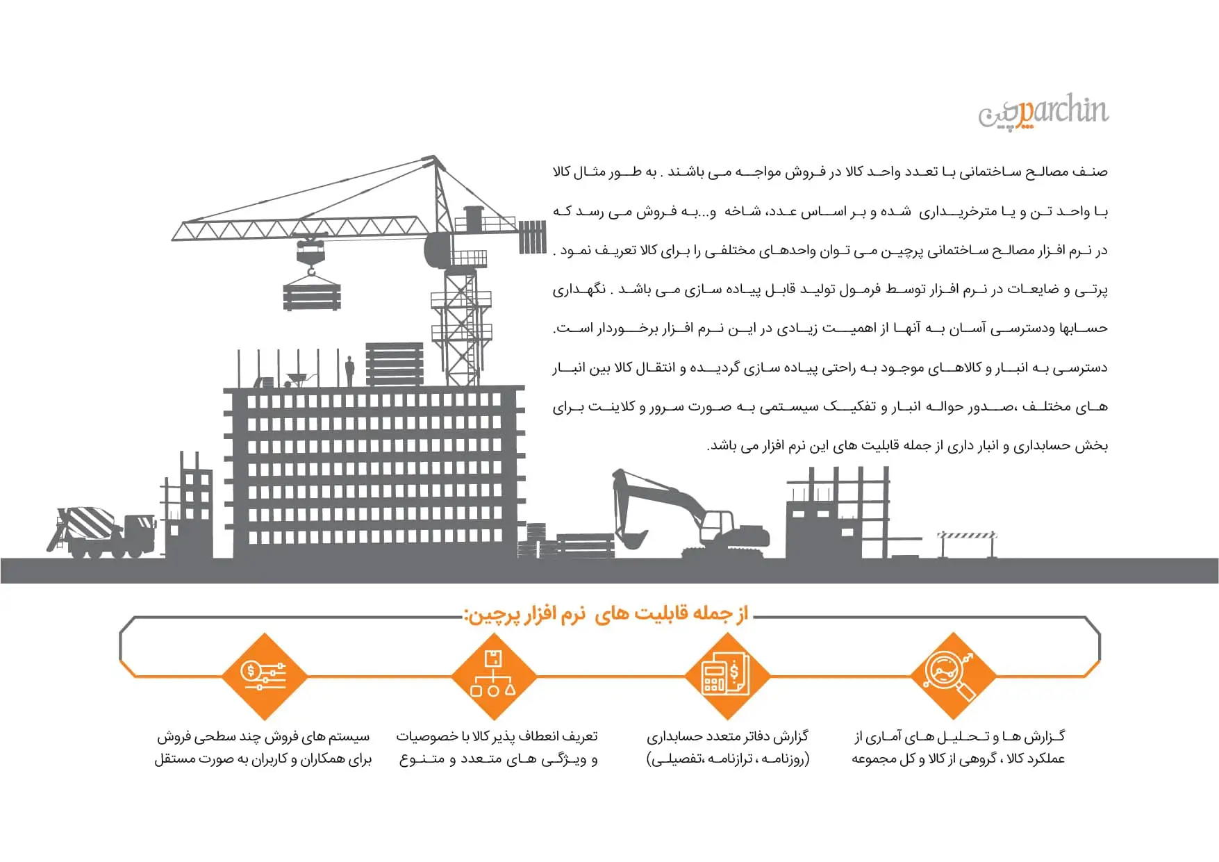 نرم افزار پرچین ویژه فروشندگان مصالح ساختمانی به گونه ای طراحی شده که در آن راحتی کاربر و در عین حال سرعت و دقت عملکرد نرم افزاری درنظر گرفته شده است.