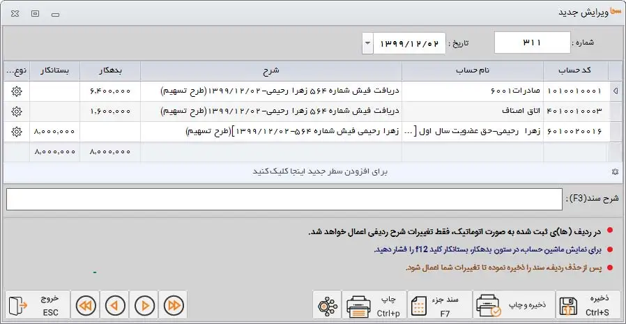 1- امکان ثبت تمامی درآمدها،هزینه ها و اسناد مالی اتحادیه های مختلف به تفکیک بر روی یک نرم افزار