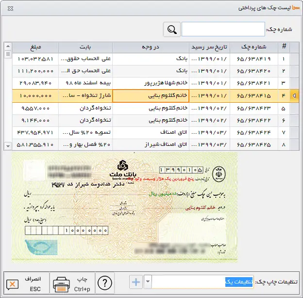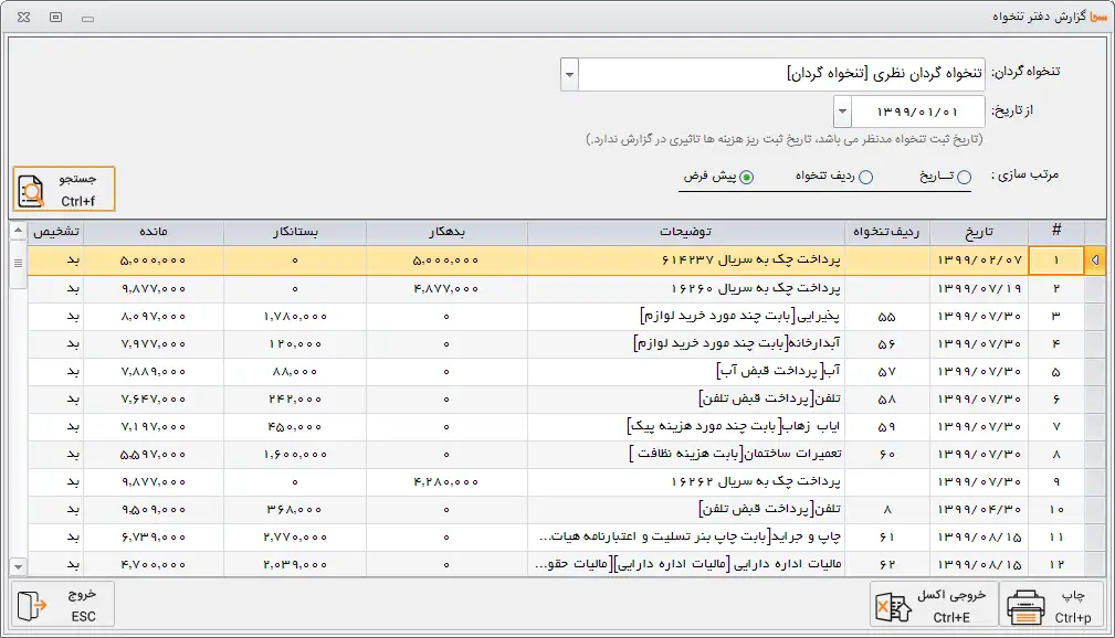 2- امکان مشاهده ی دفتر تنخواه به تفکیک تنخواه گردان