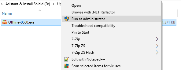- فایل دریافتی را از حالت فشرده خارج نمایید. (با راست کلیک بر روی فایل بروز رسانی و کلیک بر روی گزینه Run As Administartor)