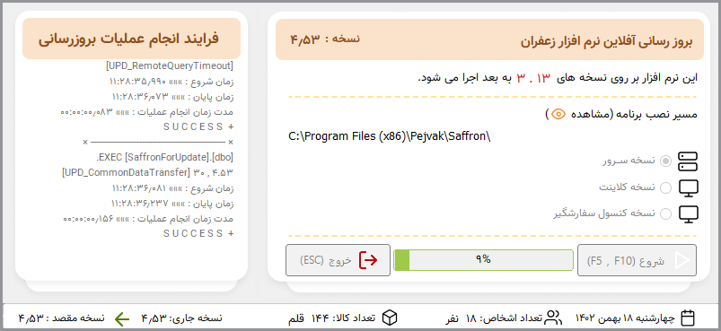 - پس از پایان عملیات بروز رسانی، عملیات بهینه سازی حجم بانک اطلاعاتی انجام می شود و صفحات زیر را مشاهده خواهید نمود.